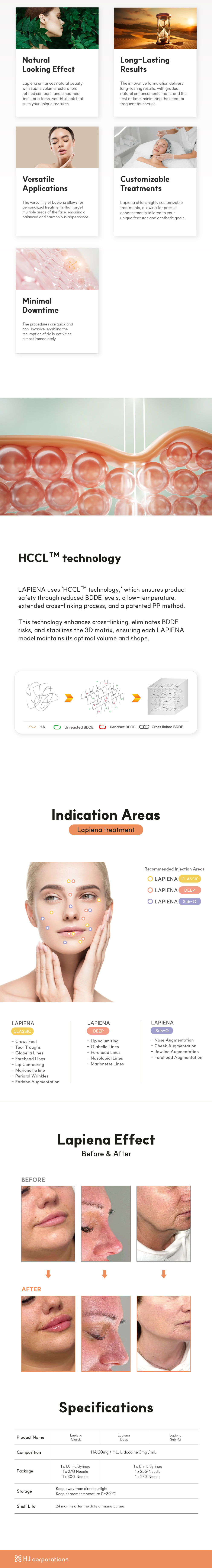 Lapiena is a premium HA filler with lidocaine that boosts elasticity, restores volume, and smooths wrinkles for firmer, younger-looking skin.